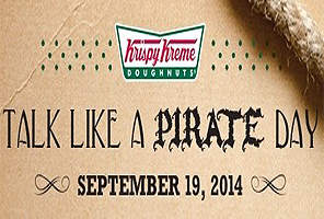 Reminder: FREE Original Glazed Doughnut at Krispy Kreme when you talk like a pirate or if you wear full pirate attire you can get a FREE Dozen Original Glazed Doughnuts at participating Krispy Kreme on September 19, 2014. Call your local Krispy Kreme to be sure they are participating.